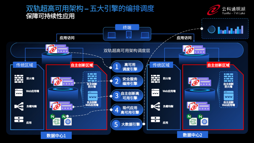 为实现双轨超高可用架构信创区和非信创区的跨域协同,实现信创区域和非信创区域的平滑过渡,神州米兰电竞通过五大引擎实现多层次的应用可持续性。